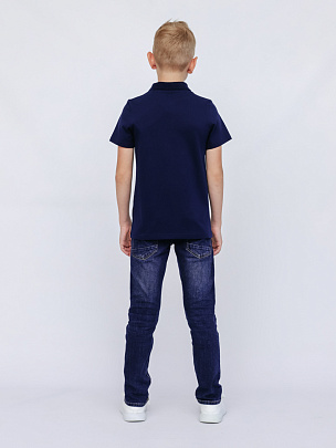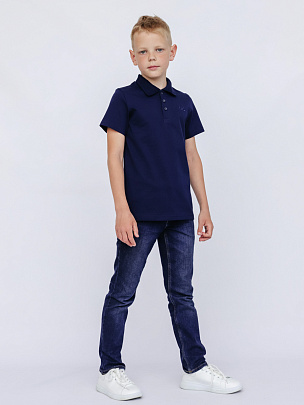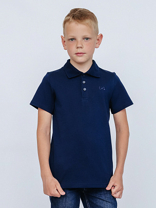Рубашка-поло для мальчика. Модель с короткими рукавами и отложным воротником. Спереди застежка на пуговицы. На полочке декоративная вышивка.