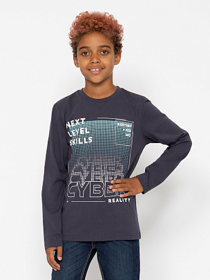 Джемпер с длинным втачным рукавом. Воротник из материала с добавлением эластана. Перед декорирован принтом "Киберкоманда".