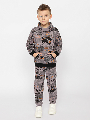 Толстовка с высоким воротником из основного полотна, карманом "кенгуру" и притачным поясом. Воротник спереди со вставкой из полотна с эластаном. Рукава длинные, с манжетами. Манжеты и пояс выполнены из полотна с эластаном.