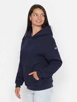 Толстовка женская с капюшоном БЕЗ ШНУРКА и карманом-кенгуру. Манжеты и пояс из эластичной рибаны. На рукаве декоративная силиконовая этикетка CRB.